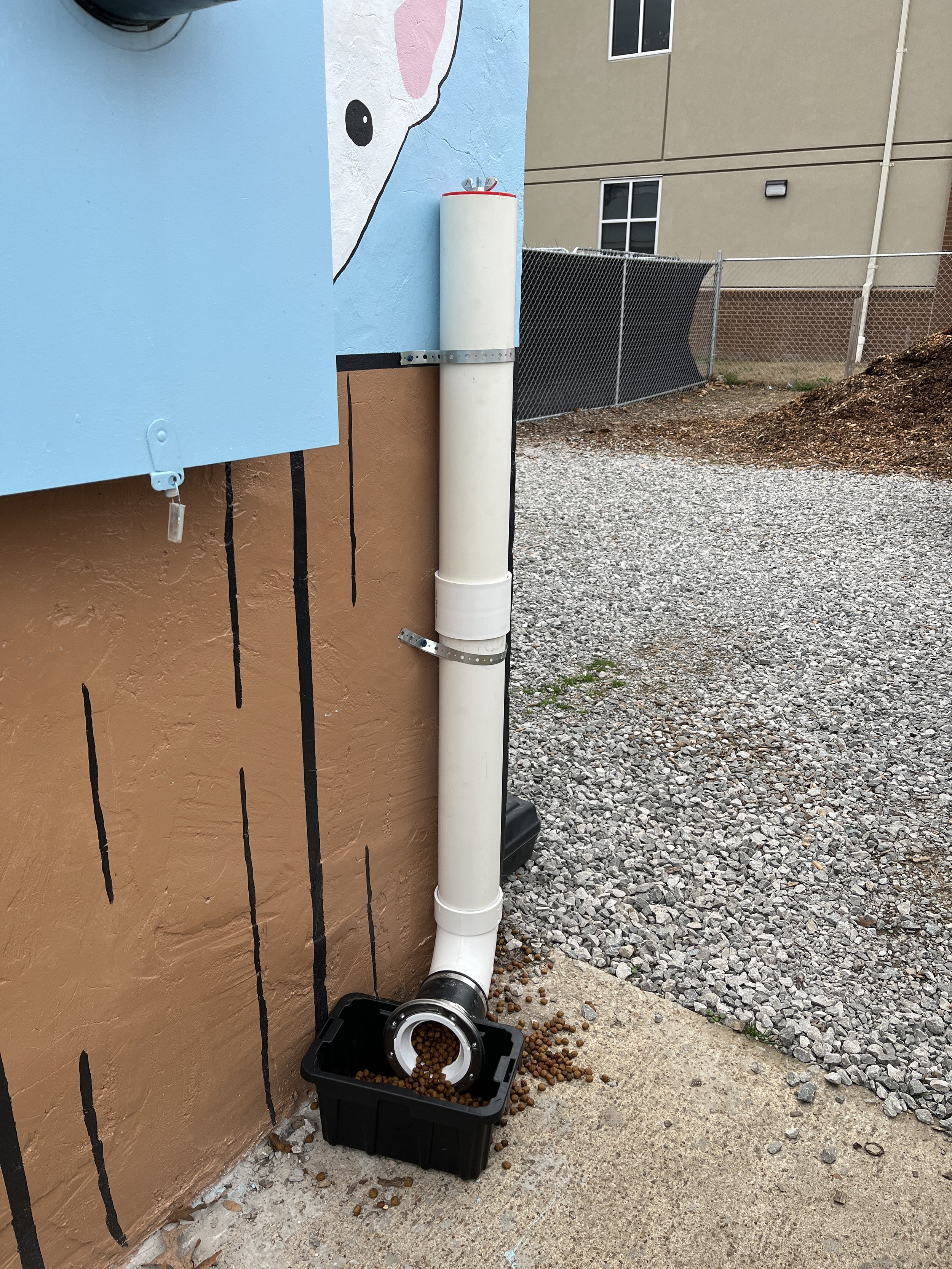 If we aren’t available and your pup needs food now, stop by and let them chow down at our feeding station at the southwest corner of our building.